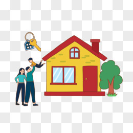 卡通扁平风房子成交钥匙商务房屋租赁素材元素