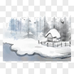 手绘水墨风雪景元素