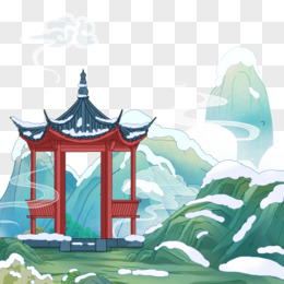手绘国潮风冬天雪景插画元素
