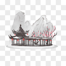 手绘亭子走廊古风水墨建筑元素