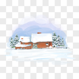 手绘冬天雪景房插画元素