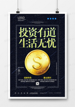 投资有道生活无忧创意黑金宣传海报模板设计