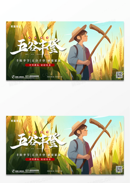 手绘卡通农民秋收食物大丰收喜悦场景素材