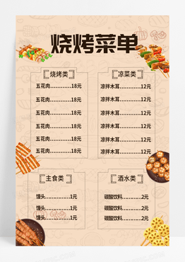简约时尚烧烤菜单棕色背景五花肉菜单海报