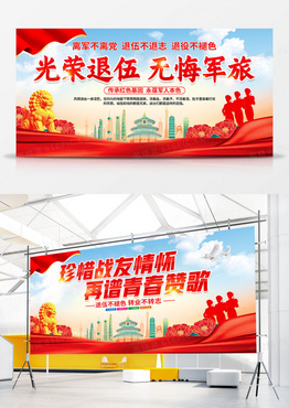 时尚大气光荣退伍无悔军旅退伍宣传展板
