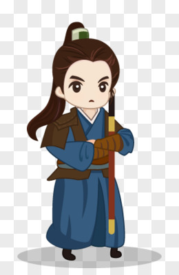 卡通古人拿着武功秘籍免抠元素