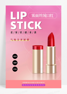 渐变红色简约风雾面丝绒口红美妆口红海报