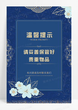 蓝色简约贵重物品温馨提示宣传海报