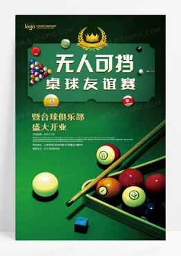 大气无人可挡桌球友谊赛健身台球宣传海报设计