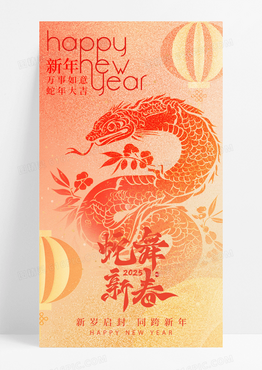 橙色渐变蛇舞新春2025年蛇年新年手机宣传海报