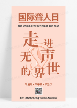 创意粉色国际聋人日走进无声的世界节日公益宣传海报