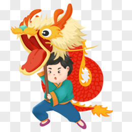 卡通手绘新年牛牛舞龙玩绣球免抠插画