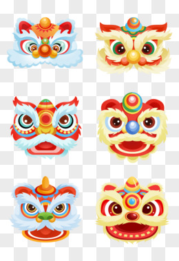 插画风牛年小牛舞狮玩绣球场景免抠元素