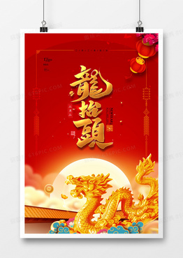 二月龙抬头可爱儿童舞狮节日习俗卡通元素