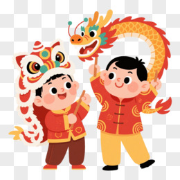 小朋友舞狮新年节日喜庆元宵春节免抠元素
