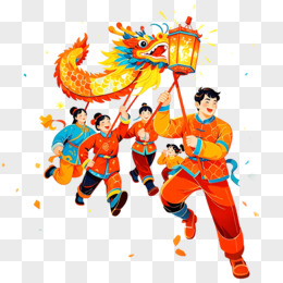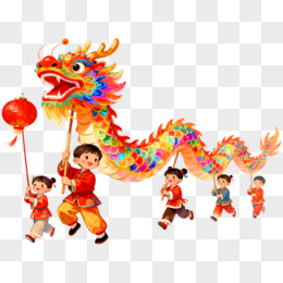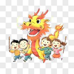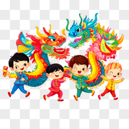 卡通风春节舞龙免抠元素