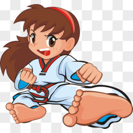 一组卡通手绘女孩练功夫拳法合集之动作四素材