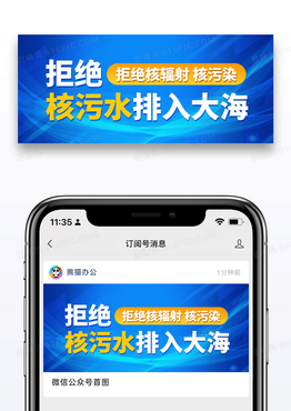 蓝色简约核污水抵制日本排放核污水公众号首图
