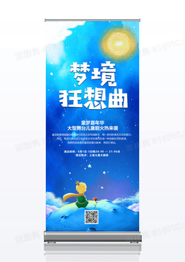 大气蓝色梦幻儿童剧梦境狂想曲演出宣传易拉宝展架
