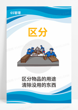 蓝色简约卡通风格企业6S管理制度宣传展板五项管理海报