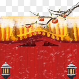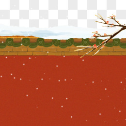 手绘落雪的宫墙屋檐免抠素材