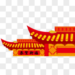 卡通手绘屋檐城墙素材