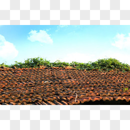 绿草屋檐蓝天白云