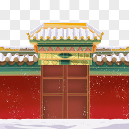 手绘下雪的宫墙免抠元素