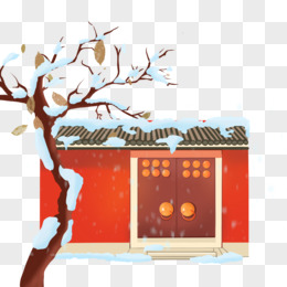 手绘一个落雪的宫墙免抠元素