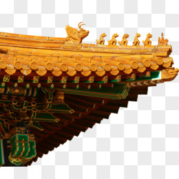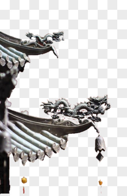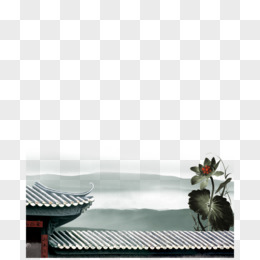 一组手绘插画中国风古代建筑瓦片屋檐套图合集元素四