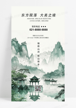 简约时尚地产宣传屋檐墨绿色新中式海报海报设计图片
