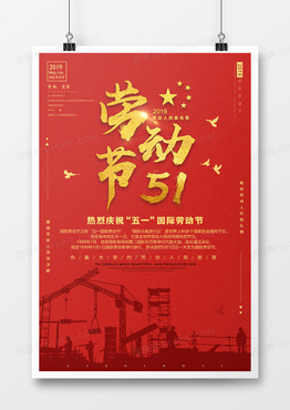 红金大气五一劳动节创意海报