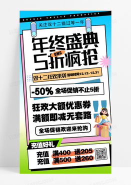 创意双十二年终盛典五折疯抢手机海报