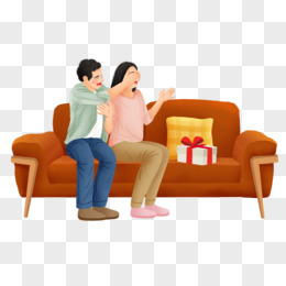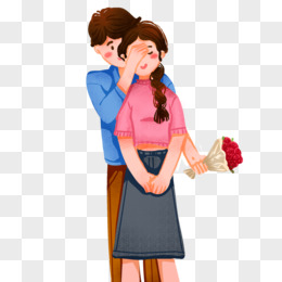 手绘卡通情侣蒙眼给惊喜场景插画免抠元素