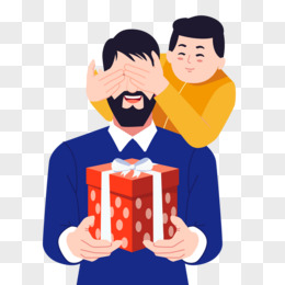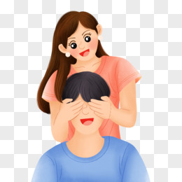 手绘卡通儿子捂住妈妈眼睛免抠素材