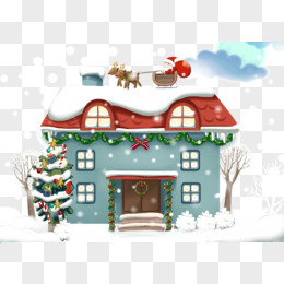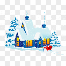 卡通手绘免抠冬天雪屋素材