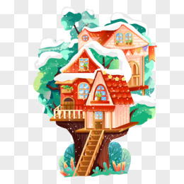 手绘唯美童话小树屋素材