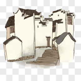 徽派建筑小院插画元素