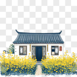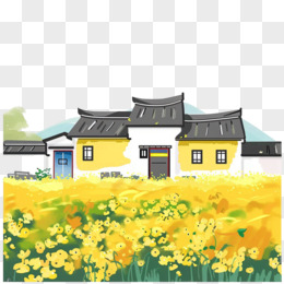 春天油菜花和房子插画