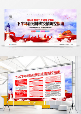 党建大气下半年新冠肺炎疫情防控指南宣传展板设计