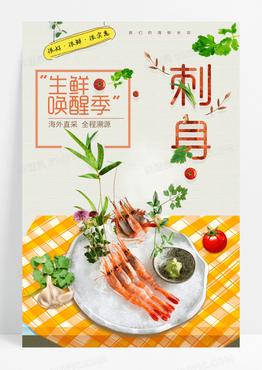 小清新日本料理刺身虾餐饮美食海报刺身海报