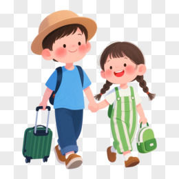 两个小朋友出门旅游免抠元素