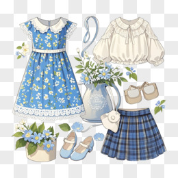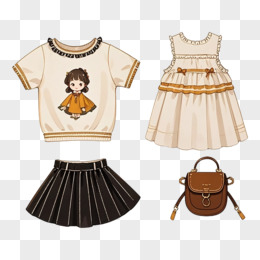 卡通手绘夏装服饰套图素材