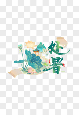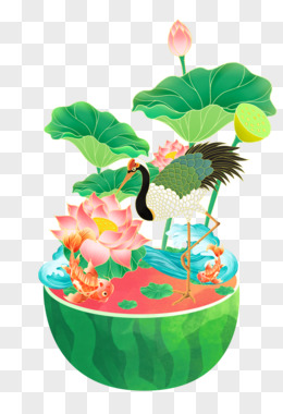 中式西瓜荷塘荷花仙鹤锦鲤合成元素