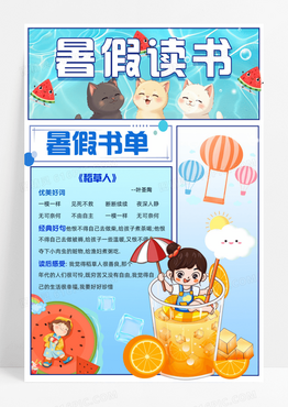 暑假读书夏季凉爽可爱插画书单阅读手抄报