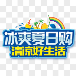 清凉一夏创意卡通手绘艺术字设计