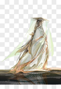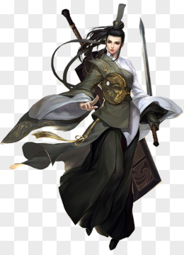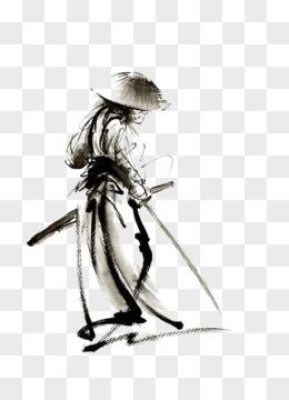 水墨风古风中国古代红衣女侠客持剑正面图免抠元素