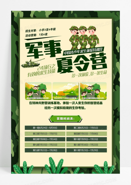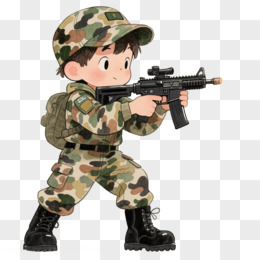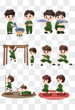 卡通水彩动漫风学生军训军事夏令营免抠元素
