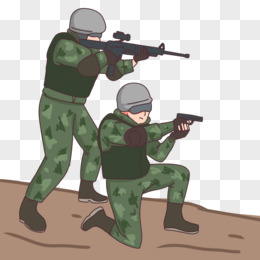 一组卡通手绘插画风学生军事夏令营项目合集之练习狙击元素