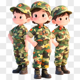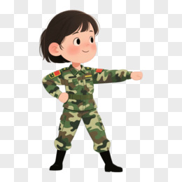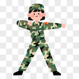 卡通插画军训夏令营儿童穿迷彩服敬礼免抠元素